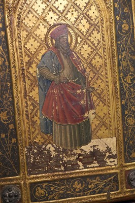 Known as the 'prince' of Sienese forgers, Icilio Joni began work in a gilding workshop in Siena as a young man. He went on to set up his own restoration business which led him into the world of forgeries, finding that the market for such items in 19th century Italy was flourishing. Like a number of his contemporaries he forged panel paintings, triptychs, and wooden caskets, passing them off as fifteenth or sixteenth century originals, but, more unusually, he also forged bookbindings. He had read of the distinctive and highly decorated Tavolette di Biccherna book covers used by the city of Siena and started to produce his own, layering wooden panels with plaster and painting them with tempera and gold. Although his bindings were somewhat different from the originals - since he had never been to the Archivio di Stato to study the originals - he was able to sell his work through associates in Florence and Rome, and his success was so great that he later claimed in his autobiography that a director from the Archivio di Stato had been convinced by an example of his work and declared it beautiful. Eventually, in the pursuit of fame, Joni revealed the truth, but his workmanship was such that he still received commissions for these bindings, which continue to be sought after today.