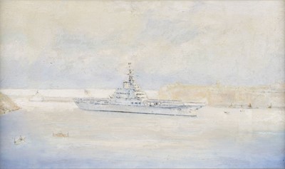 Lot 56 - * Moodie (R, Commander). HMS Albion entering Grand Harbour, Malta 1953, oil on board